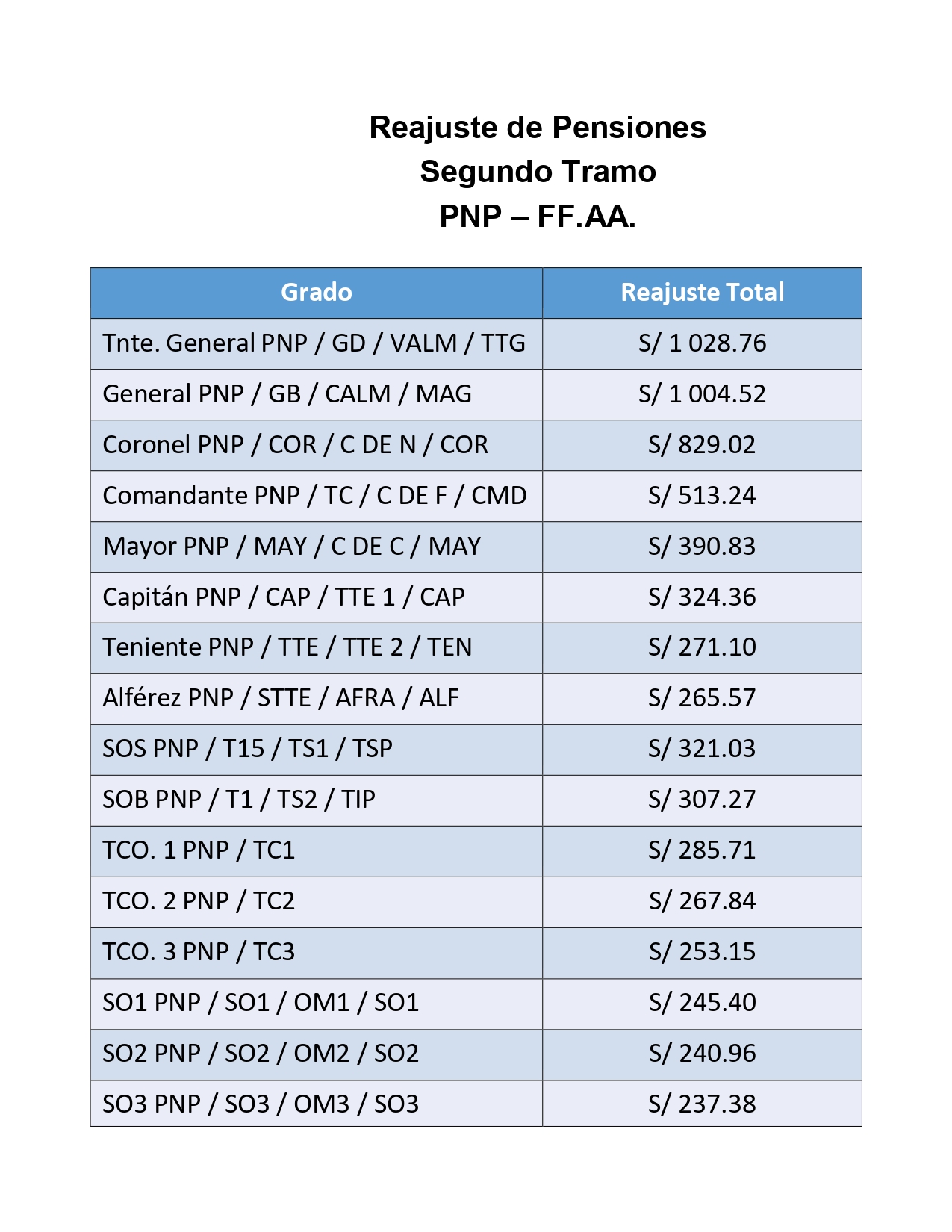 La Caja de Pensiones Militar-Policial informó que el segundo reajuste de pensiones aprobado mediante el Decreto Supremo N° 147-2025-EF, publicado el 15 de julio, será abonadhoy o 25 de julio del 2025.
