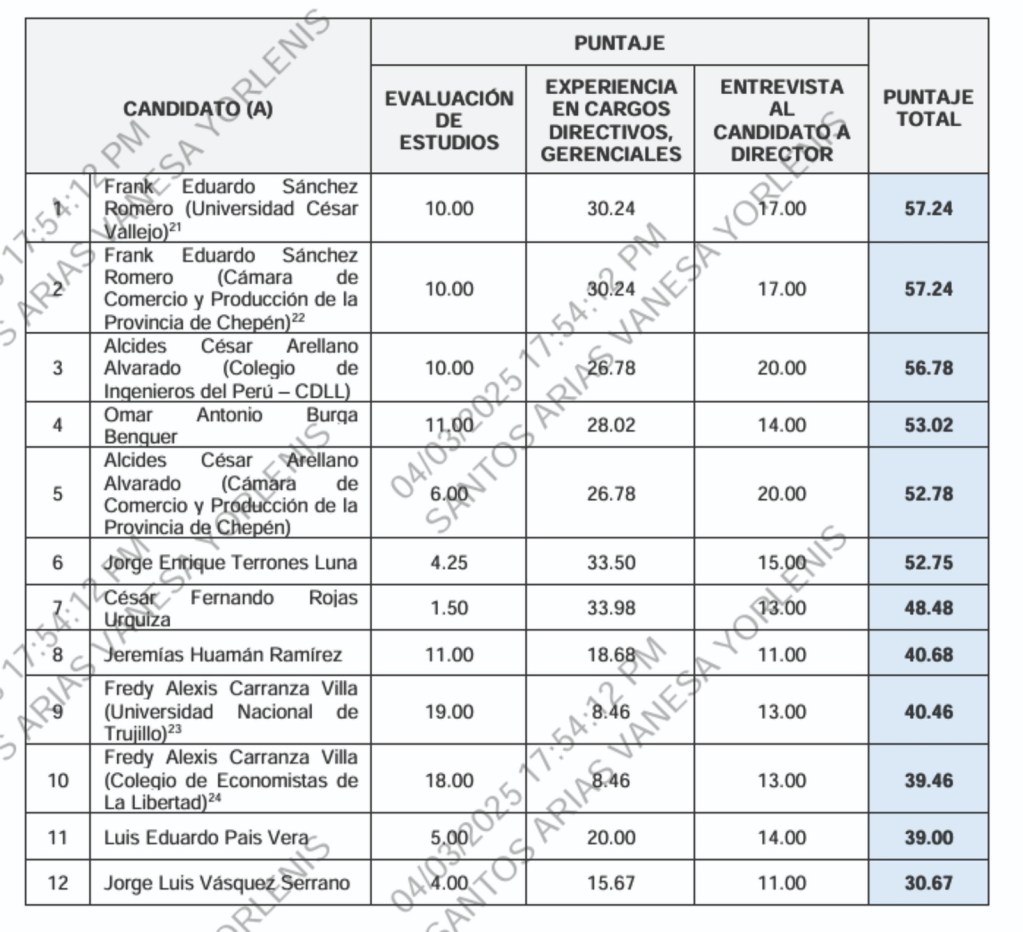 Ello se tradujo en que Alcides Arellano obtuvo menos puntaje que Frank Sánchez en experiencia laboral y académica, algo que sorprendió a todos dado que Arellano fue varias veces director de SEDALIB.
