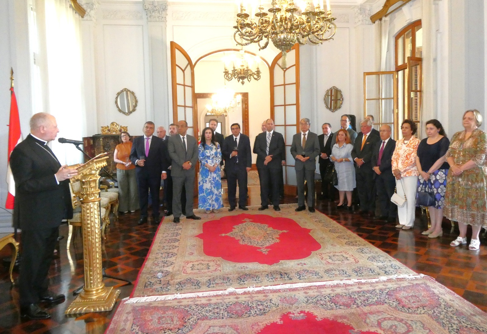 La ceremonia, presidida por el nuncio apostólico monseñor Paolo Gualtieri, reunió a embajadores y diplomáticos en un ambiente de sincera camaradería. La presencia del cuerpo diplomático prácticamente en pleno reflejó el aprecio ganado por el embajador chileno durante su gestión.