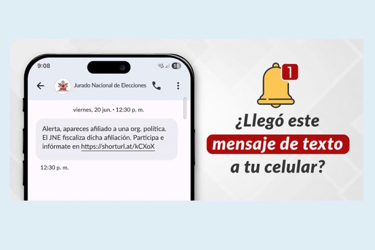 El Jurado Nacional de Elecciones (JNE) notificará desde este viernes 20 de junio a ciudadanos afiliados a organizaciones políticas mediante mensajes SMS, como parte de su fiscalización posterior.