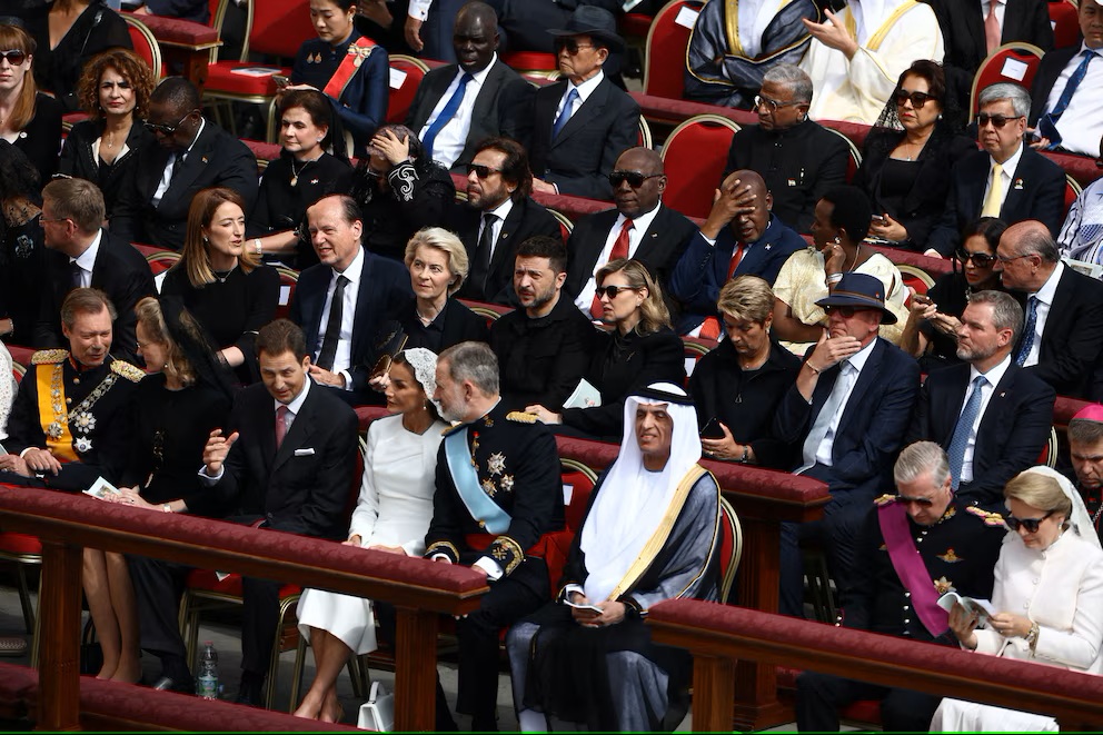 Europa mostró su respaldo al nuevo líder de los 1.400 millones de católicos del mundo con una nutrida presencia. Entre las figuras más destacadas se encontraban el presidente ucraniano Volodimir Zelensky, la primera ministra italiana Giorgia Meloni y el nuevo canciller alemán Friedrich Merz. La Unión Europea estuvo representada al más alto nivel con la presencia de Ursula von der Leyen, presidenta de la Comisión Europea, y Roberta Metsola, presidenta del Parlamento Europeo.