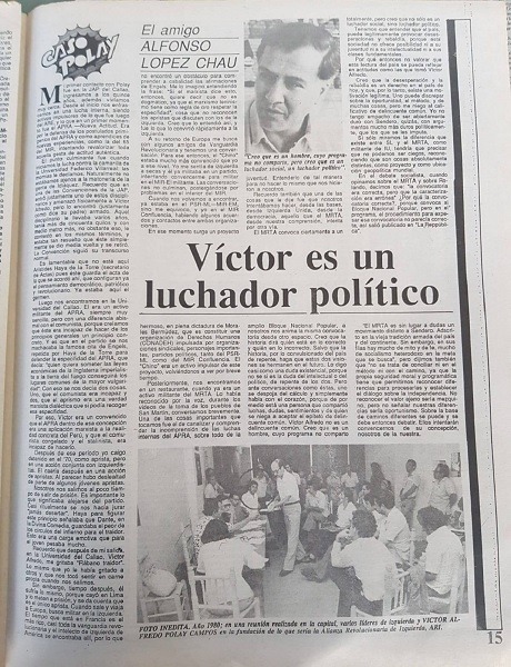 En el artículo se lee que Polay participó en debates internos y en procesos de articulación que buscaban reagrupar a la izquierda peruana frente a la crisis política y económica de la época. «Posteriormente, nos encontramos en un restaurante, cuando ya era militante activo del MRTA».