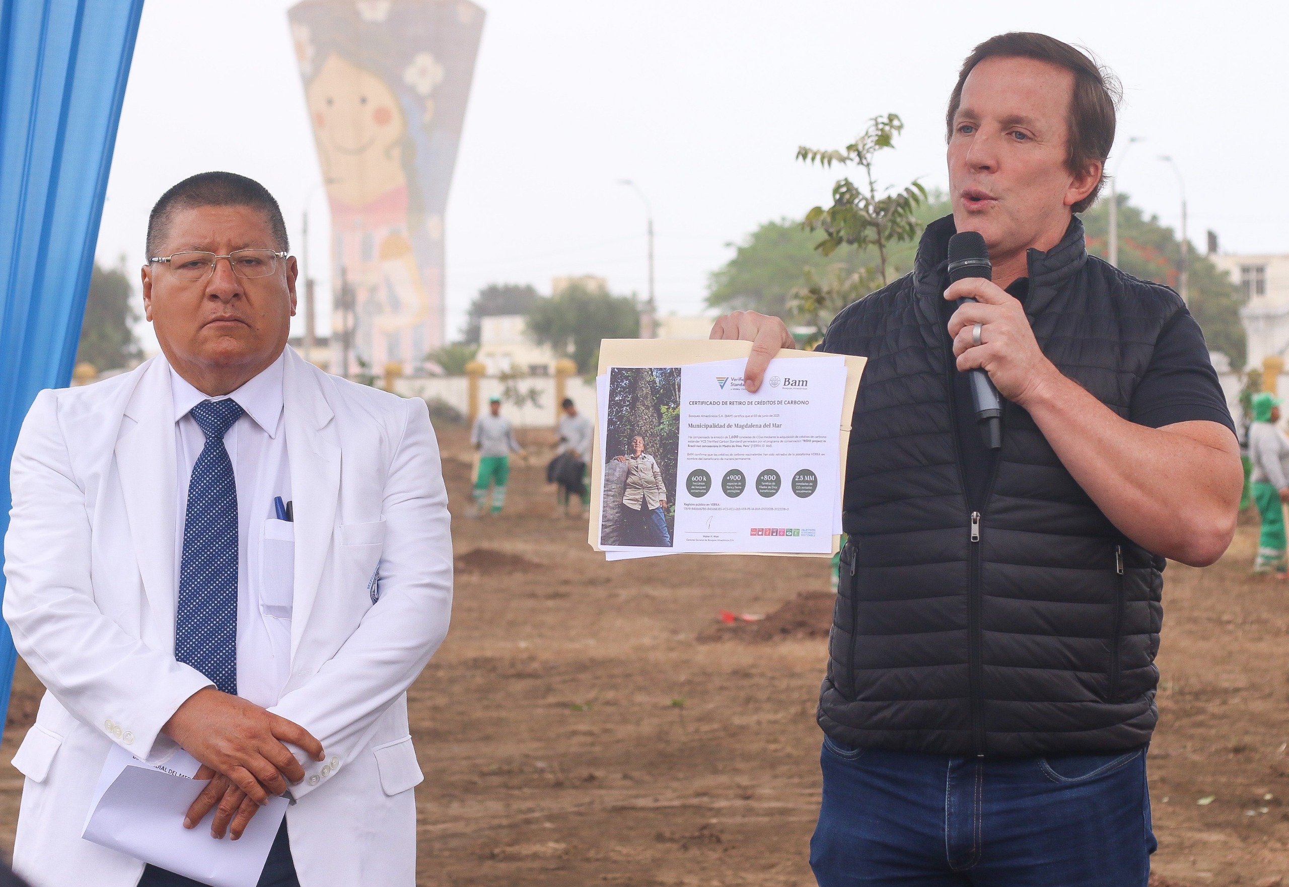 “Quiero contarles con mucho orgullo que Magdalena es el distrito líder en temas ambientales del Perú, somos la única institución pública con certificación carbono neutro del país, debidamente acreditado y certificado, no solo sembramos bosques y jardines en Magdalena, sino también en la selva de Ucayali y la amazonia peruana, nos preocupamos más allá de nuestra jurisdicción, somos la única institución pública carbono neutro del Perú” señaló el alcalde Francis Allison durante la ceremonia simbólica realizada el día de hoy.