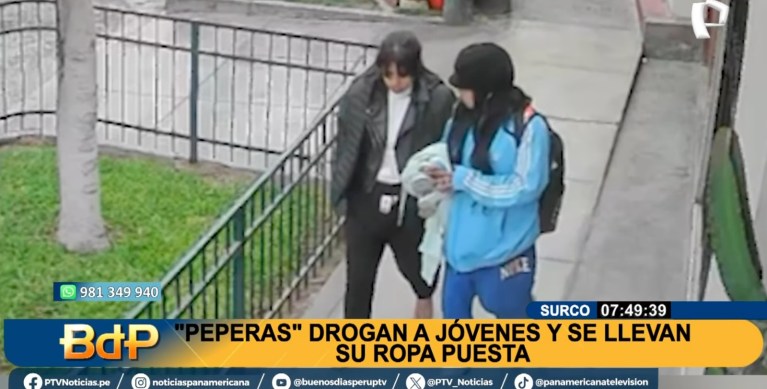 Las mujeres, con denuncias previas por delitos similares, fueron captadas por cámaras de seguridad saliendo del departamento de las víctimas … Sigue leyendo ‘Peperas’ drogan y roban a dos jóvenes en Surco: salieron del lugar vistiendo su ropa
