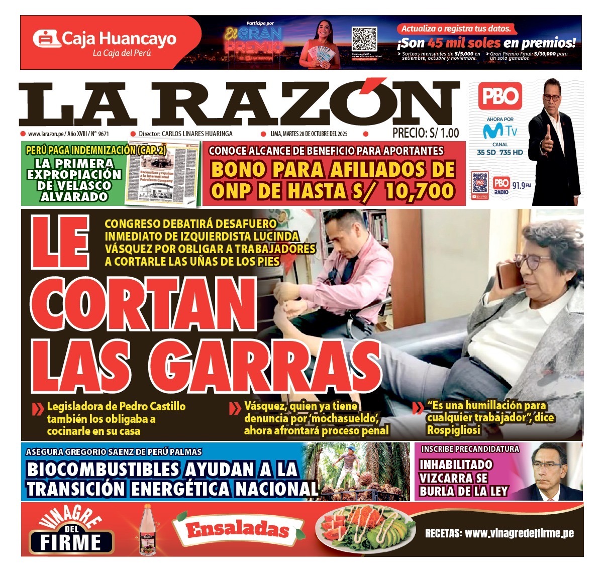 Portada Diario La Razón (28/10/2025)