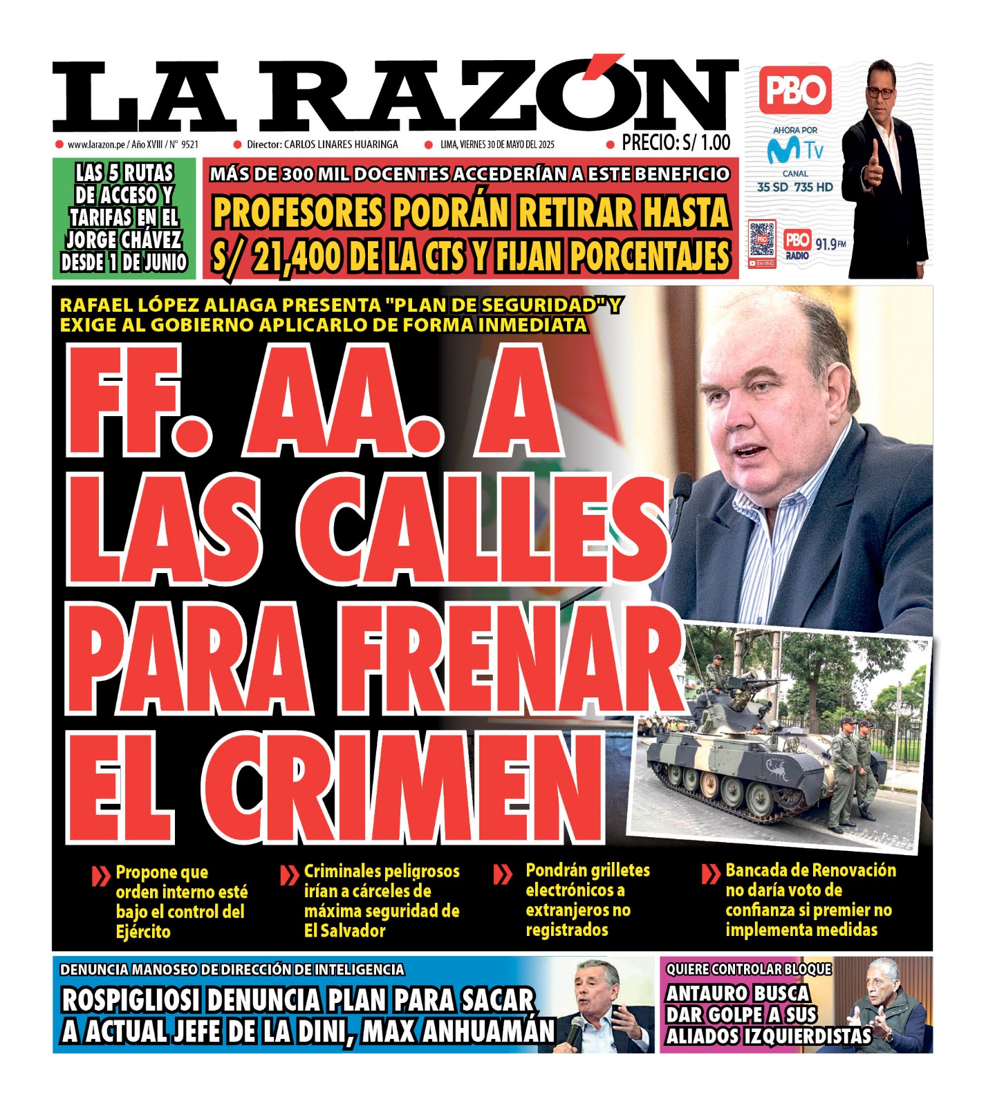 Portada Diario La Razón (30/05/2025)
