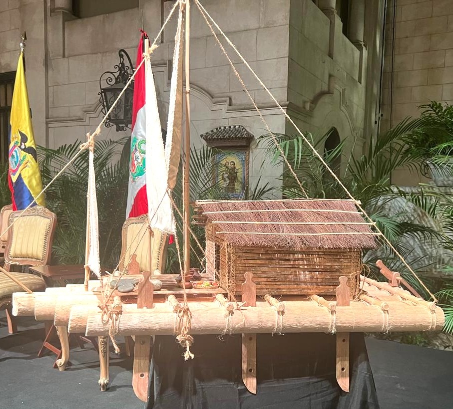 La ceremonia se abrió con el discurso del embajador de Ecuador en el Perú, Galo Yépez, quien agradeció la hospitalidad de Ana María García Alvarado y recordó que el primer presidente del Perú, el mariscal José de la Mar, nació en Cuenca. Subrayó que las balsas ancestrales son patrimonio compartido y que “el mar no fue una frontera, sino un canal de integración”.